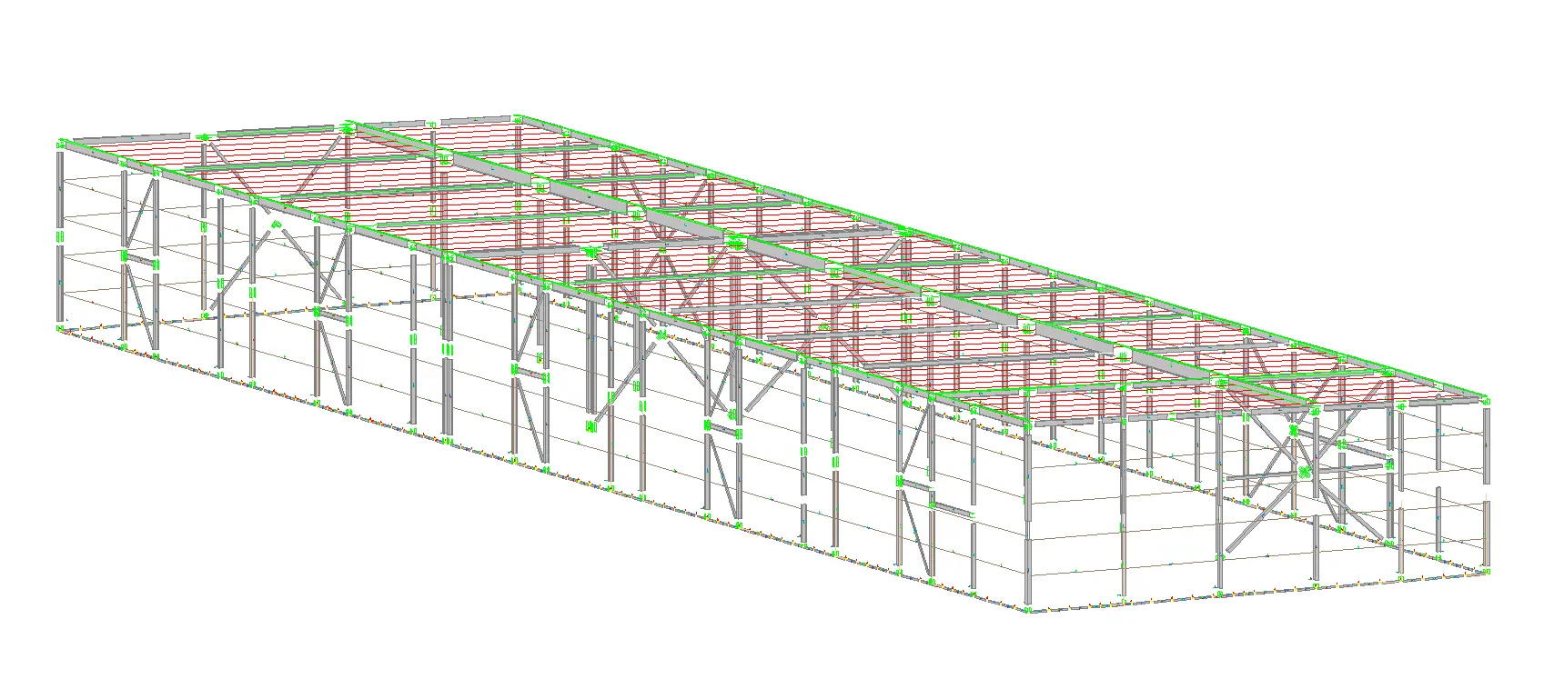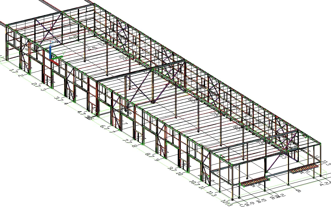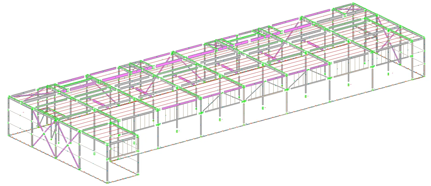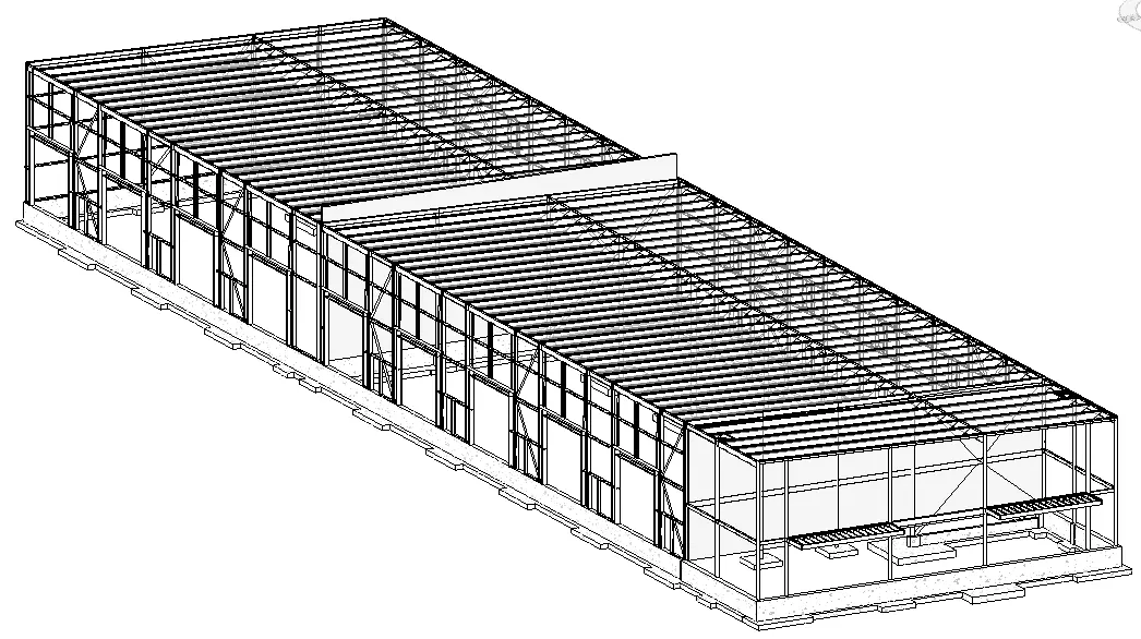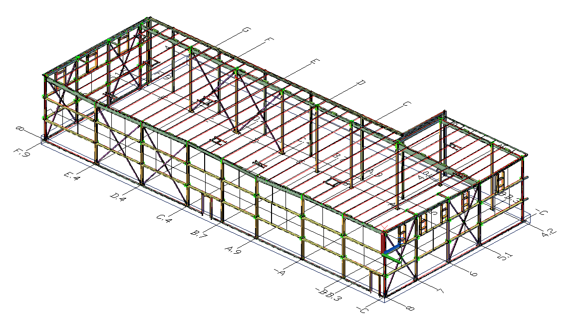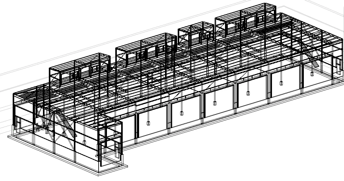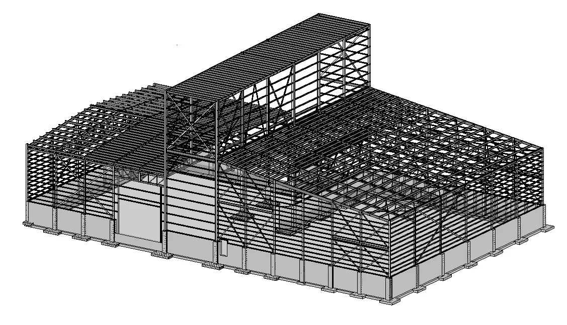 Extension of an existing building for a paint room. The mandate included shop drawings with Autodesk Advance Steel.