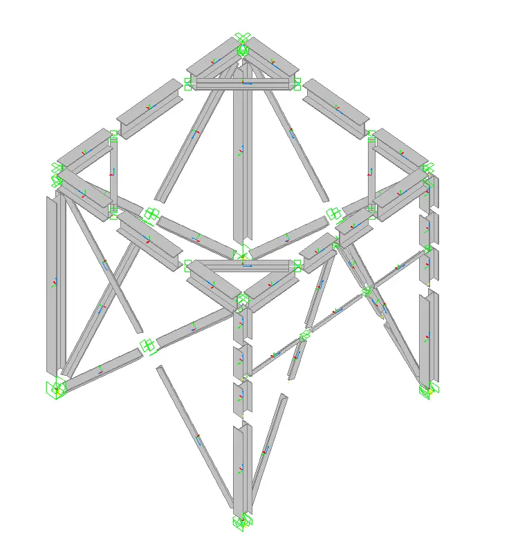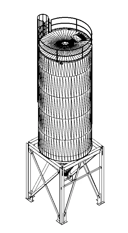 Design of a steel structure to raise a 130-ton cement powder silo. The mandate included modeling, 2D drafting with Autodesk Revit and shop drawings with Autodesk Advance Steel.
