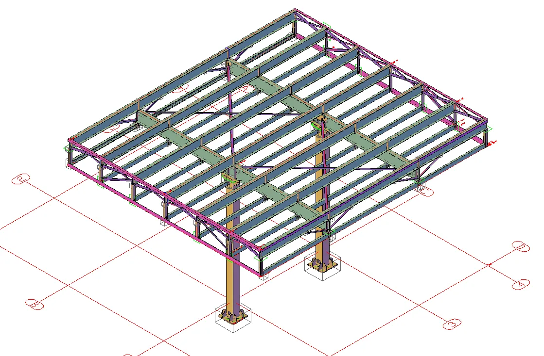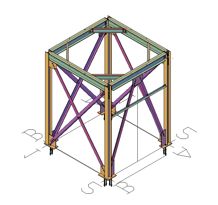 Design of a fuel tank shelter. The mandate included modeling, 2D drafting with Autodesk Revit and shop drawings with Autodesk Advance Steel.
