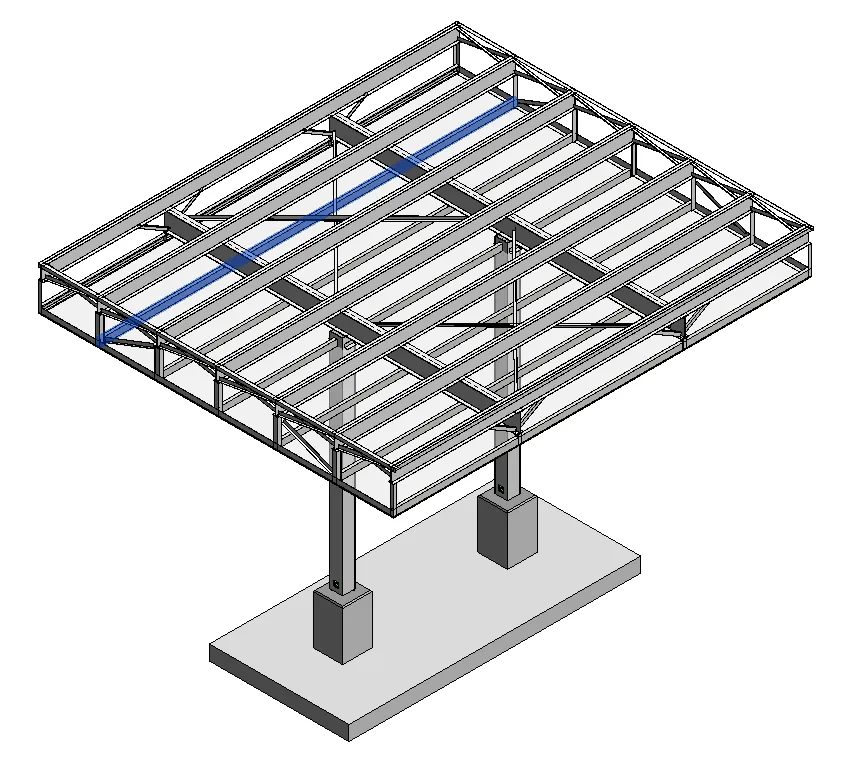 Design of a 100 ft. joist for an outdoor skating rink. The mandate included 2D modeling and drafting with Autodesk Revit.