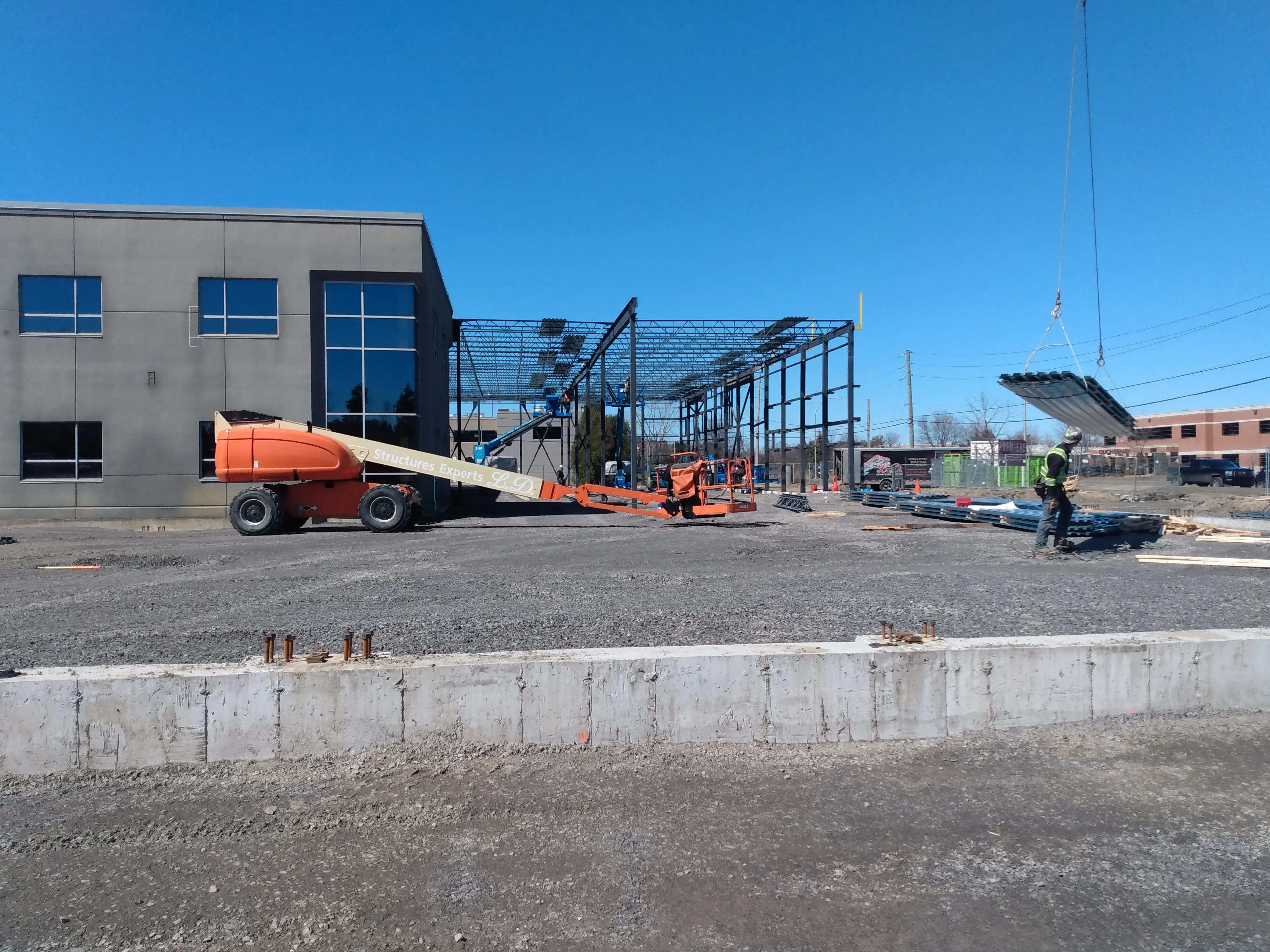Design of an industrial condo with fire separation and glass façade. The mandate included modeling, 2D drafting with Autodesk Revit, shop drawings with Autodesk Advance Steel and site supervision.